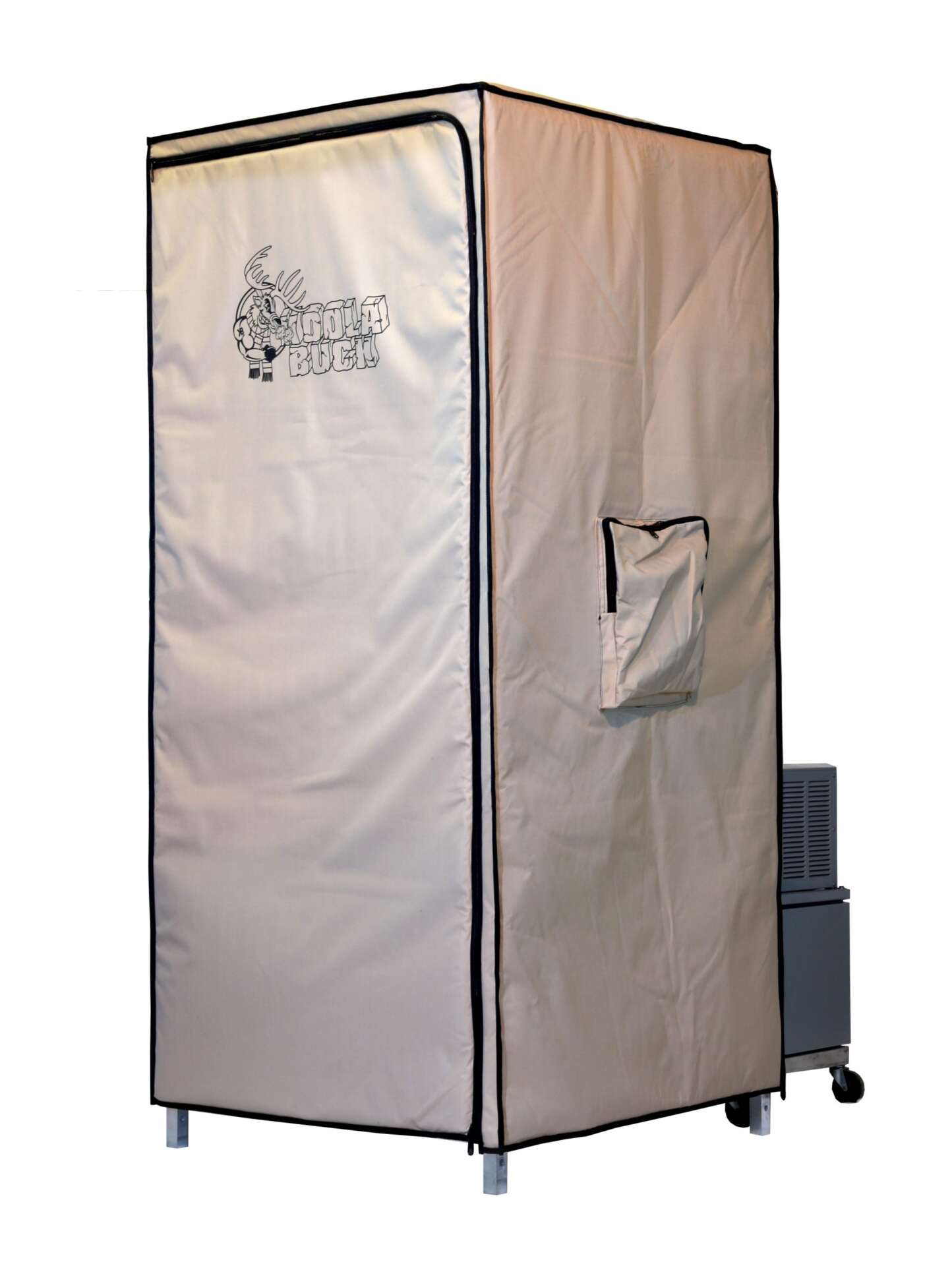The Koola Buck Junior was created with the average hunter in mind. At less than 250lbs this unit is compact and lightweight but still boasts a ceiling strength of 600lbs. Holds a quartered elk or up to 2 to 3 deer. The commercial refrigeration system maintains the 3’ x 3′ x 6’3” cooling area at 35-41 degrees Fahrenheit even when the outside temperatures reach 85-90 degrees. Operates on standard 110V electric and only requires a 15-amp service. This is a must have investment for every big game hunter; now you can afford to hang and age your game animals and enjoy that great dry aged flavor. Commercial refrigeration unit with a full 2-year Warranty.